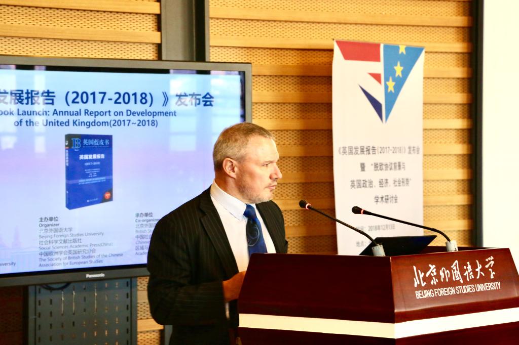 12月13日,《英国发展报告(2017-2018)》发布会暨“脱欧协议前景与英国政治、经济、社会形势”学术研讨会在我校举行。此次活动由我校、社会科学文献出版社、中国欧洲学会英国研究分会主办,北京外国语大学英语学院英国研究中心、《欧洲研究》编辑部、北京外国语大学区域与全球治理高等研究院承办。