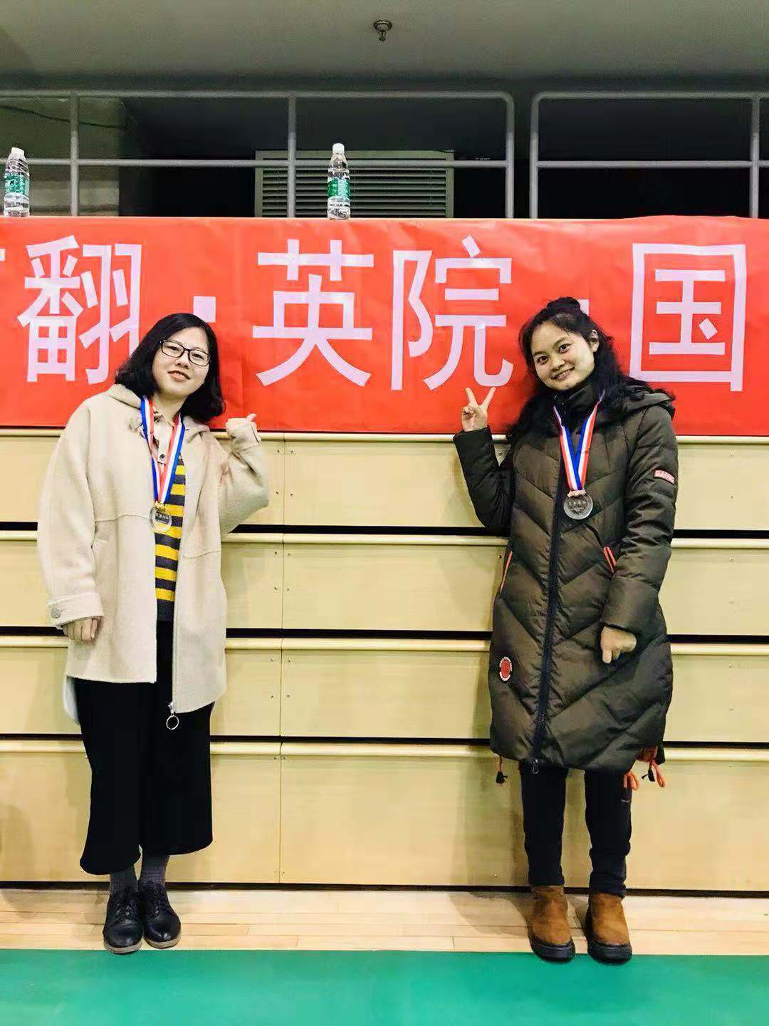 在比赛过程中,三院的亲友团也是一道亮丽的风景,他们为表现精彩的选手鼓掌呐喊,也为暂时失利的选手加油打气,为比赛创造了热烈的氛围。比赛结束后,三院联合为获奖选手颁发了奖牌,为获得团体总冠军的英语学院颁发了精美的奖杯。颁奖仪式结束,三院选手和工作人员合影留念,共同记录了美好的一幕。