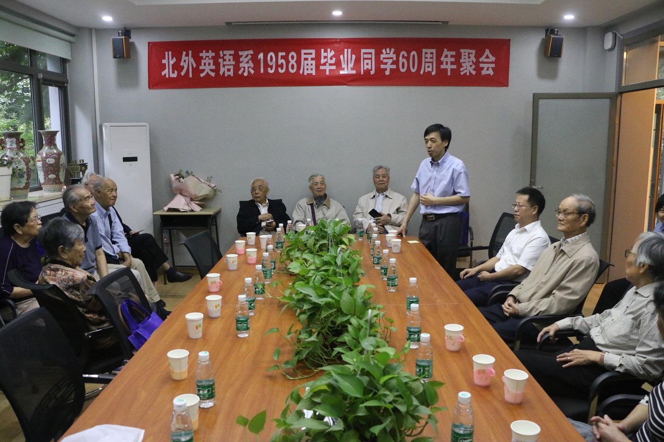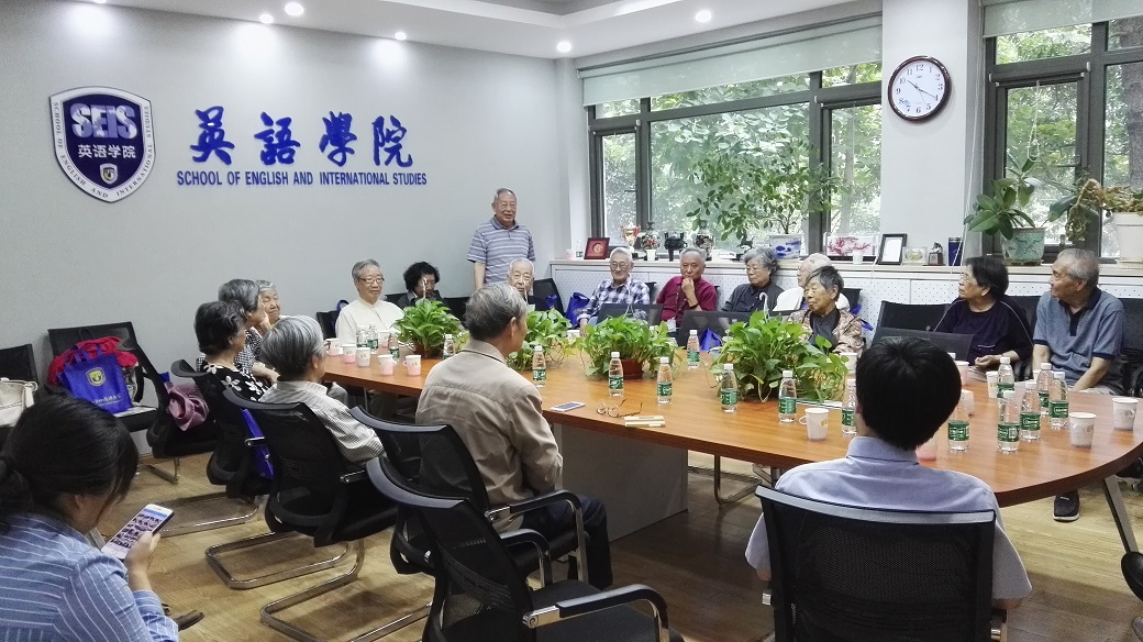 另外,有近30位58届校友上午在英语楼111会议室召开了毕业60周年聚会活动。他们中年纪最小的81岁,年纪最大的86岁。不乏还有外地赶来的校友。他们神采奕奕、精神矍铄、身康体健。英语学院院长张剑、党总支书记路兴出席了此次活动,对老校友们的到来表示了热烈欢迎。
