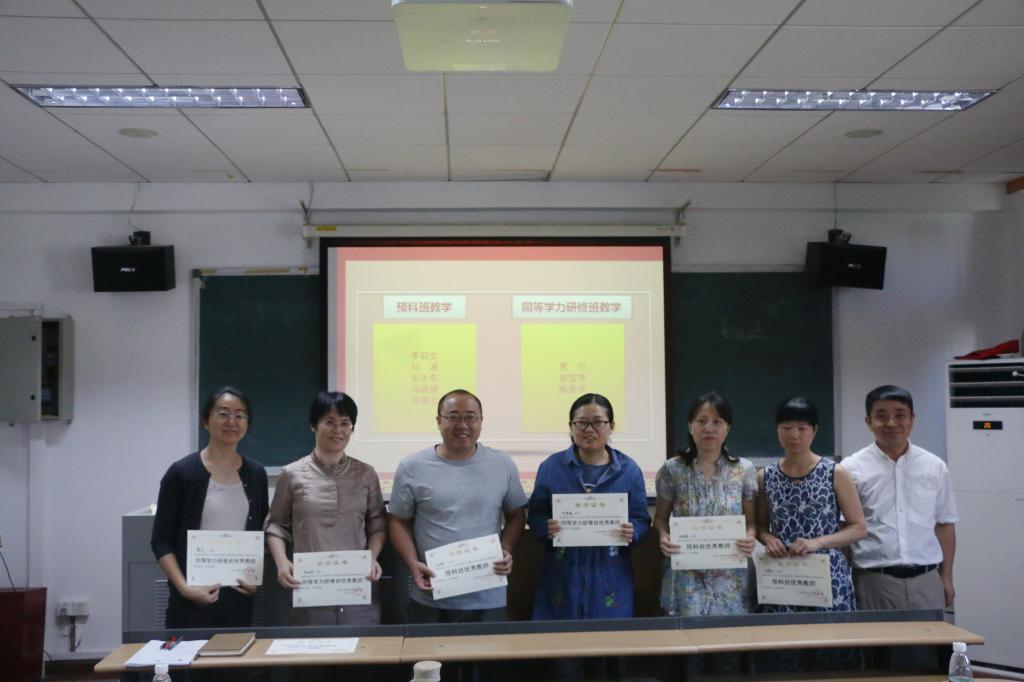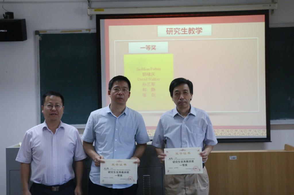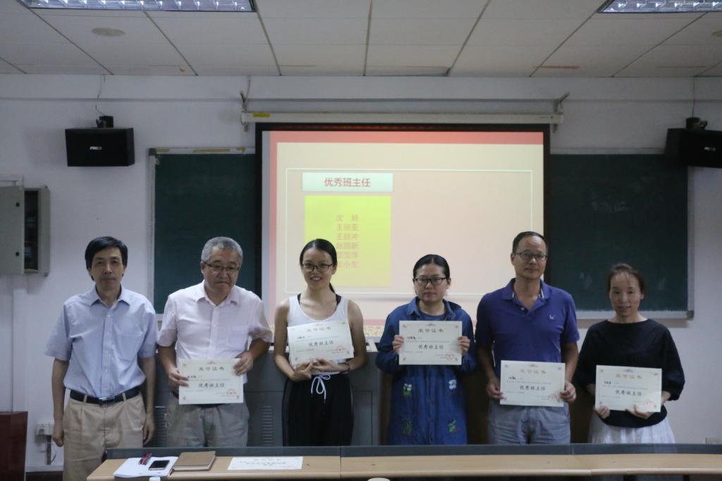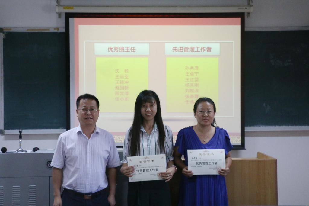 会议最后,对2017-2018学年第二学期优秀教师、优秀班主任及优秀管理工作者进行了表彰。奖项共分“本科生教学优秀奖”、“研究生教学优秀奖”、“预科班教学优秀奖”、“同等学力研修班教学优秀奖”、“优秀班主任“及“优秀管理工作者”六项,分别由英语学院院长张剑、党总支书记路兴、副院长王展鹏对获奖教职工进行颁奖。