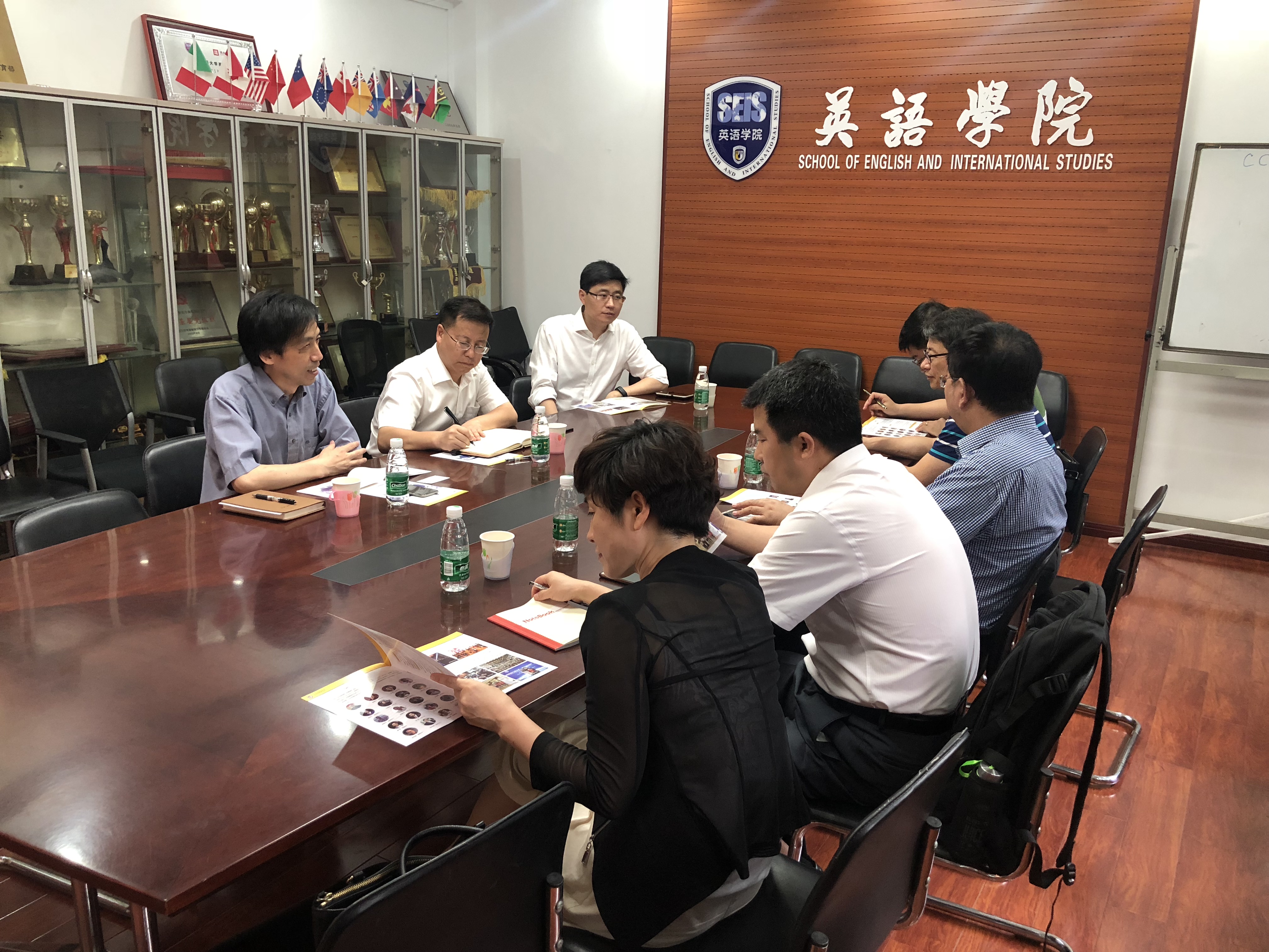 ——2018年7月5日下午,北方民族大学高岳林副校长等一行到访英语学院。英语学院院长张剑、党总支书记路兴在115会议室进行了接待。