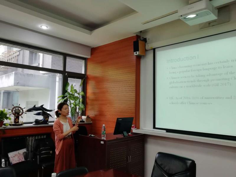 ——博士生Catriona Osborne现阶段研究课题为爱尔兰汉语初学者的语言习得。Osborne此次前来不仅与学生们分享了其汉语学习经历,而且着重介绍了爱尔兰舞蹈的历史,通过舞蹈思考爱尔兰的独立运动。