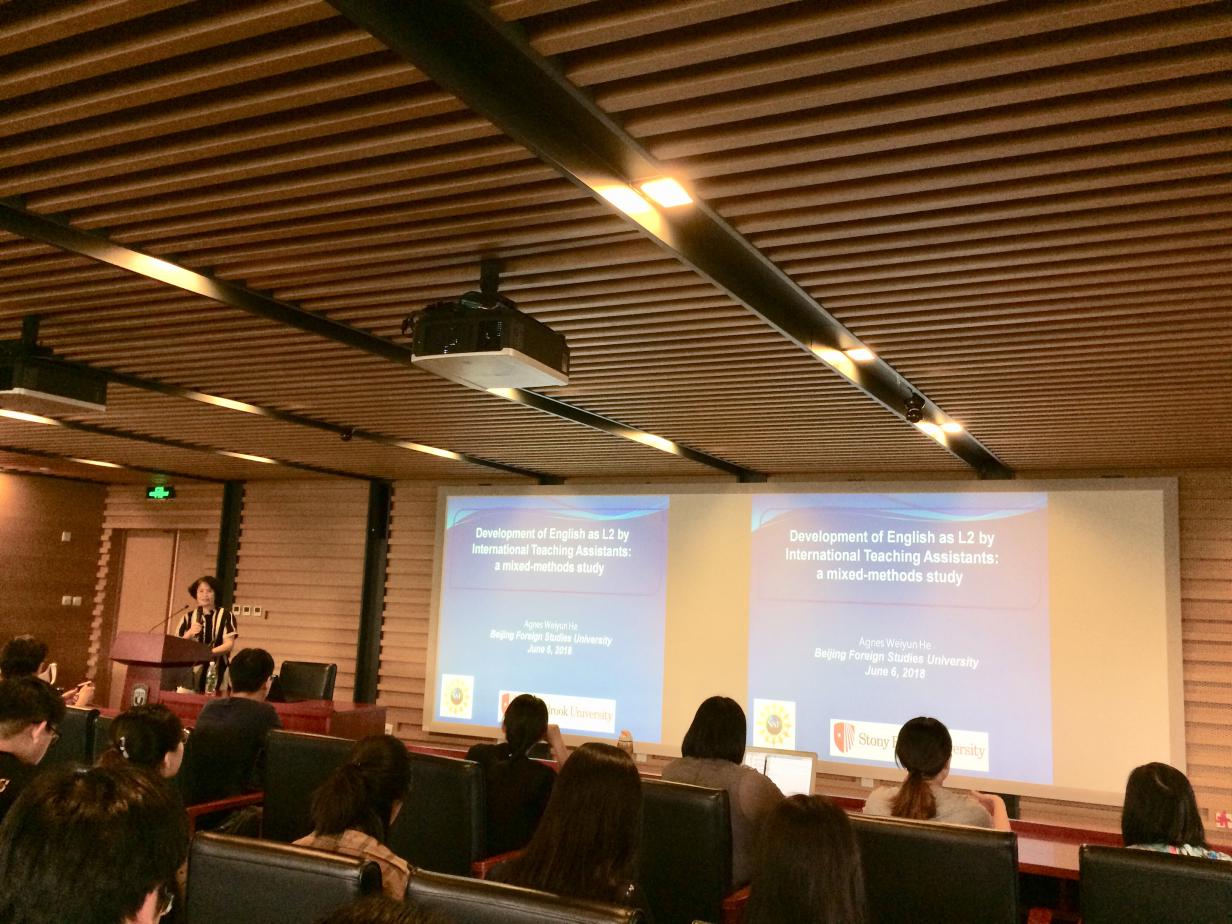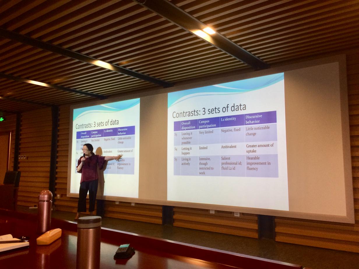 ——应英语学院语言学研究中心主任陈亚平教授的邀请,美国纽约州立大学石溪分校应用语言学教授Agnes Weiyun He(何纬芸)于6月6日到访我校,并为英语学院的师生们做了题为“Development of English as L2 by International Teaching Assistants: a Mixed-Methods Study”的学术讲座。何教授是石溪分校多语言和跨文化交流中心(MIC)创始人和中心主任,并且还担任该校亚洲和亚洲美国研究系(AAAS)主任。何纬芸教授主要研究语言语境和语篇的结合,探讨人们如何通过日常互动逐步构建和重构概念、社团和文化。近年来,她专门研究不同时期和不同背景下汉语作为传承语的社会化。