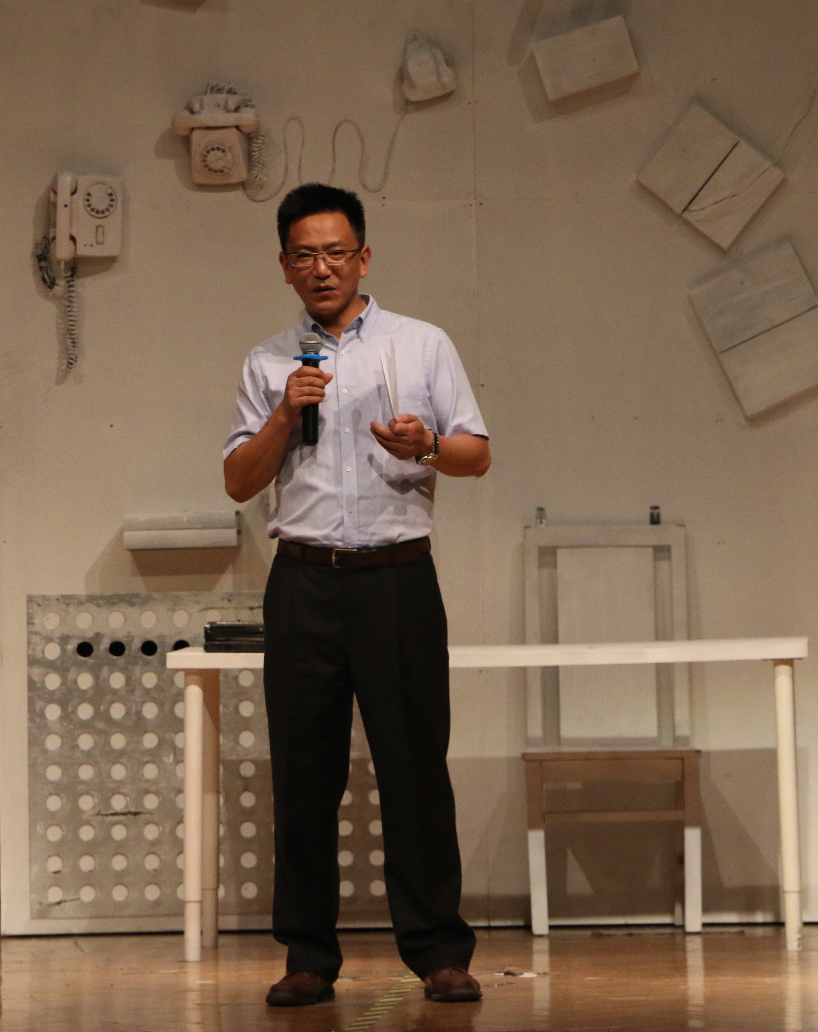 ——英语学院副院长谢韬教授为本届文化节闭幕式致辞,对远道而来的嘉宾表示热烈欢迎,并祝愿话剧演出成功。