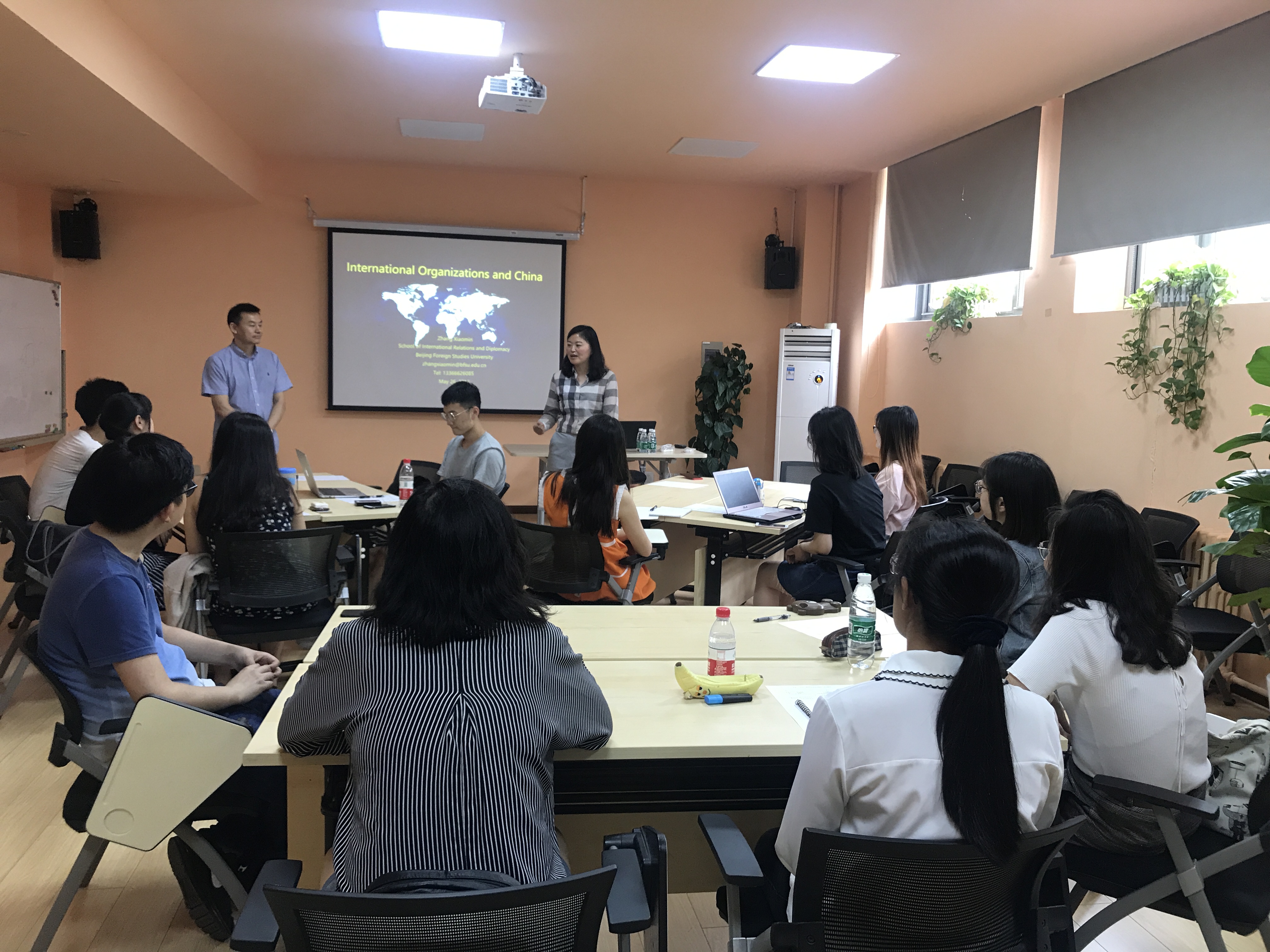 ——2018年5月26日下午2点到5点,北京外国语大学学业与职业发展工作室(简称“北外学职”)“歆航”工作坊—国际组织方向在学生中心302正式开班。工作坊首次邀请的主讲人为北京外国语大学国际关系学院党总支副书记张效民副教授,讲授内容为国际组织概况与中国使命,来自全校各院系的13名本科及硕士生参加了首次课程。