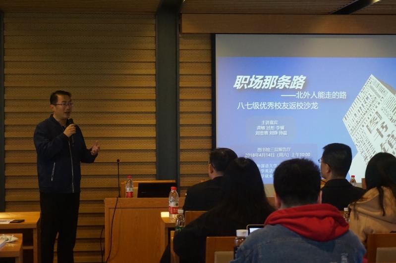 ——2018年4月14日上午十点,六位英语学院八七级优秀校友返回北外参加了在图书馆三层报告厅举办的“职场那条路——北外人能走的路”校友沙龙。