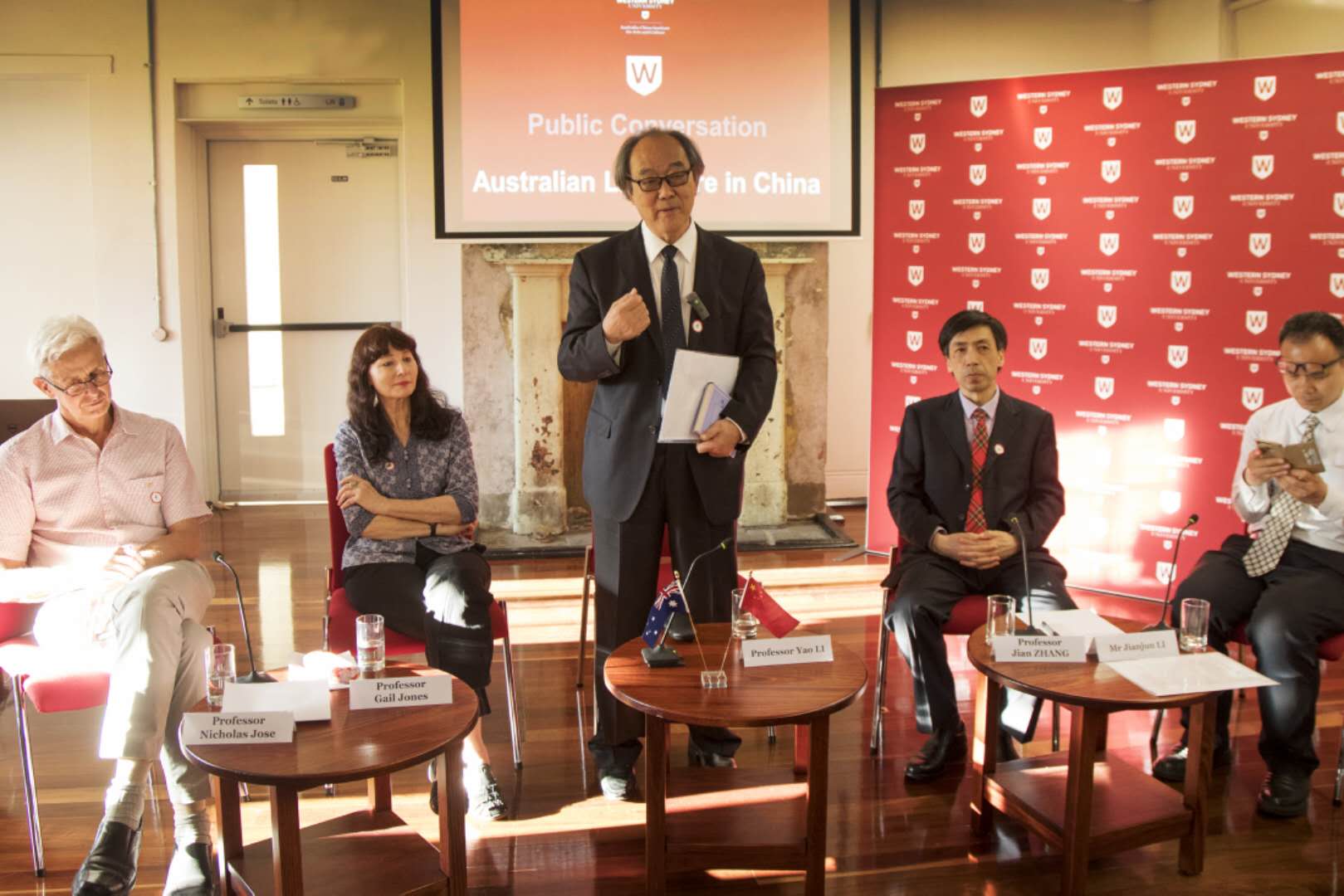 ——《李尧译文集》(10卷本)是我校澳研中心、西悉尼大学、内蒙古师范大学、在华澳大利亚研究会和青岛出版社联合出版的中国澳大利亚文学翻译领域具有里程碑意义的学术成果。围绕该套丛书的出版,英语学院与西悉尼大学澳中艺术与文化研究院联合举办了澳大利亚文学在中国对话会,澳大利亚著名作家盖尔•琼斯(Gail Jones)、周思(Nicholas Jose)、我校客座教授、翻译家李尧、英语学院院长张剑和澳研中心主任李建军就澳大利亚文学在中国的传播和影响进行了对话。对话会由西悉尼大学澳中艺术与文化研究院院长王腊宝教授主持。中国驻悉尼总领馆教育参赞牛文起先生、来自澳大利亚国内的知名作家、学者、文化官员、在华澳大利亚研究基金会主席等近百位嘉宾和学者参加了发布会和对话会。