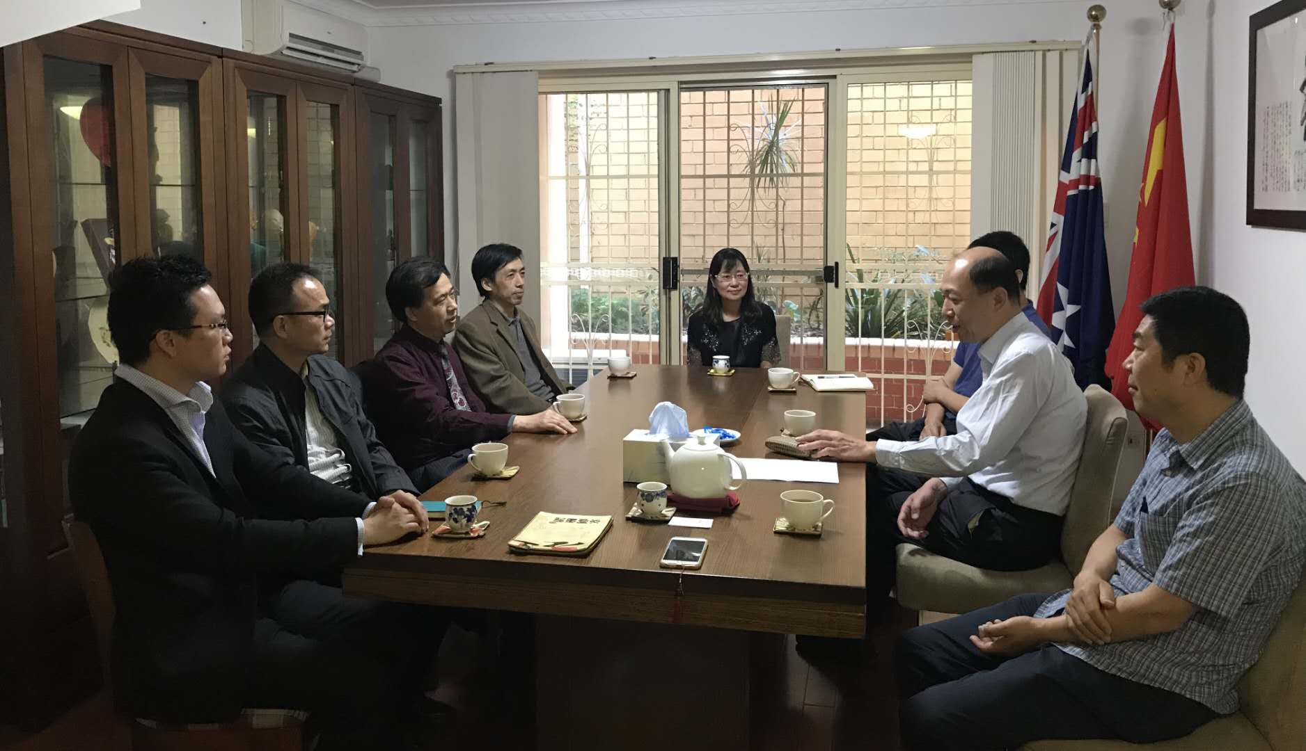 ——4月11日上午,孙有中一行拜会了中国驻悉尼总领馆教育组,与教育组牛文起参赞、刘剑波领事和赵静领事等就中澳教育交流与合作进行座谈。孙有中汇报了我校与澳大利亚高校的合作情况以及在澳大利亚研究方面的成就。近年来,我校与西悉尼大学、悉尼科技大学、西澳大利亚大学、乐卓博大学等高校开展了卓有成效的合作,提升了我校英语语言文学学科的国际化水平。英语学院澳大利亚研究中心通过与西澳大利亚大学联合轮流主办中澳关系与跨文化研究论坛和中国文学文化暑期研修班、组织编写《澳大利亚蓝皮书:澳大利亚发展报告》和创办《澳大利亚研究》期刊等举措,发挥了我校在国内澳大利亚研究领域的引领作用,在澳大利亚学术界产生良好影响。牛文起参赞表示将全力支持我校与澳大利亚高校的教育与合作以及澳大利亚研究。