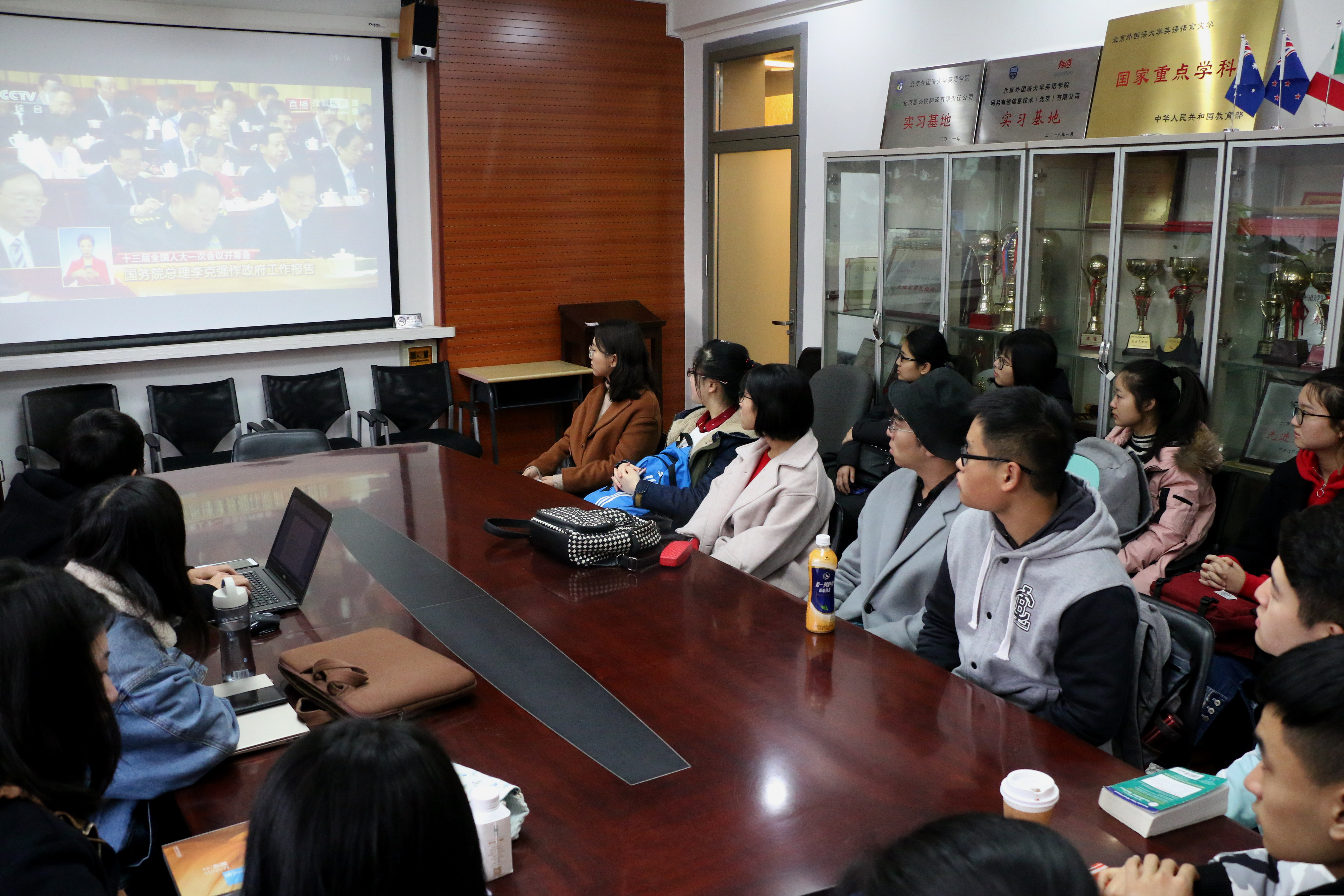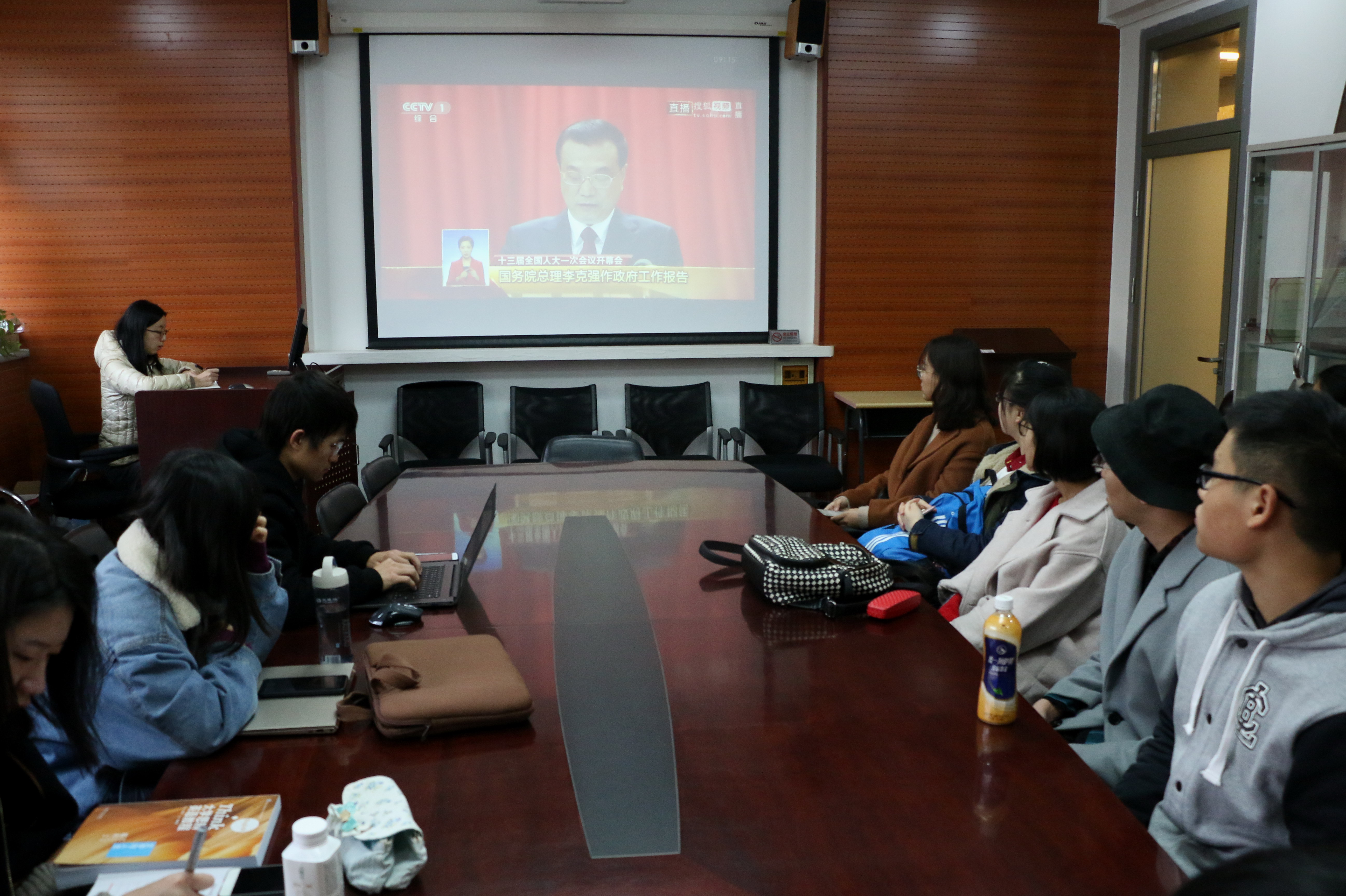 ——3月5日上午,第十三届全国人大一次会议在北京开幕。国务院总理李克强代表国务院,向大会报告过去五年政府工作李克强总理作政府工作报告,对今年工作提出建议。英语学院组织师生在115会议室现场收看,党总支书记路兴、辅导员及部分学生团支部书记、学生骨干、入党积极分子等参会学习。