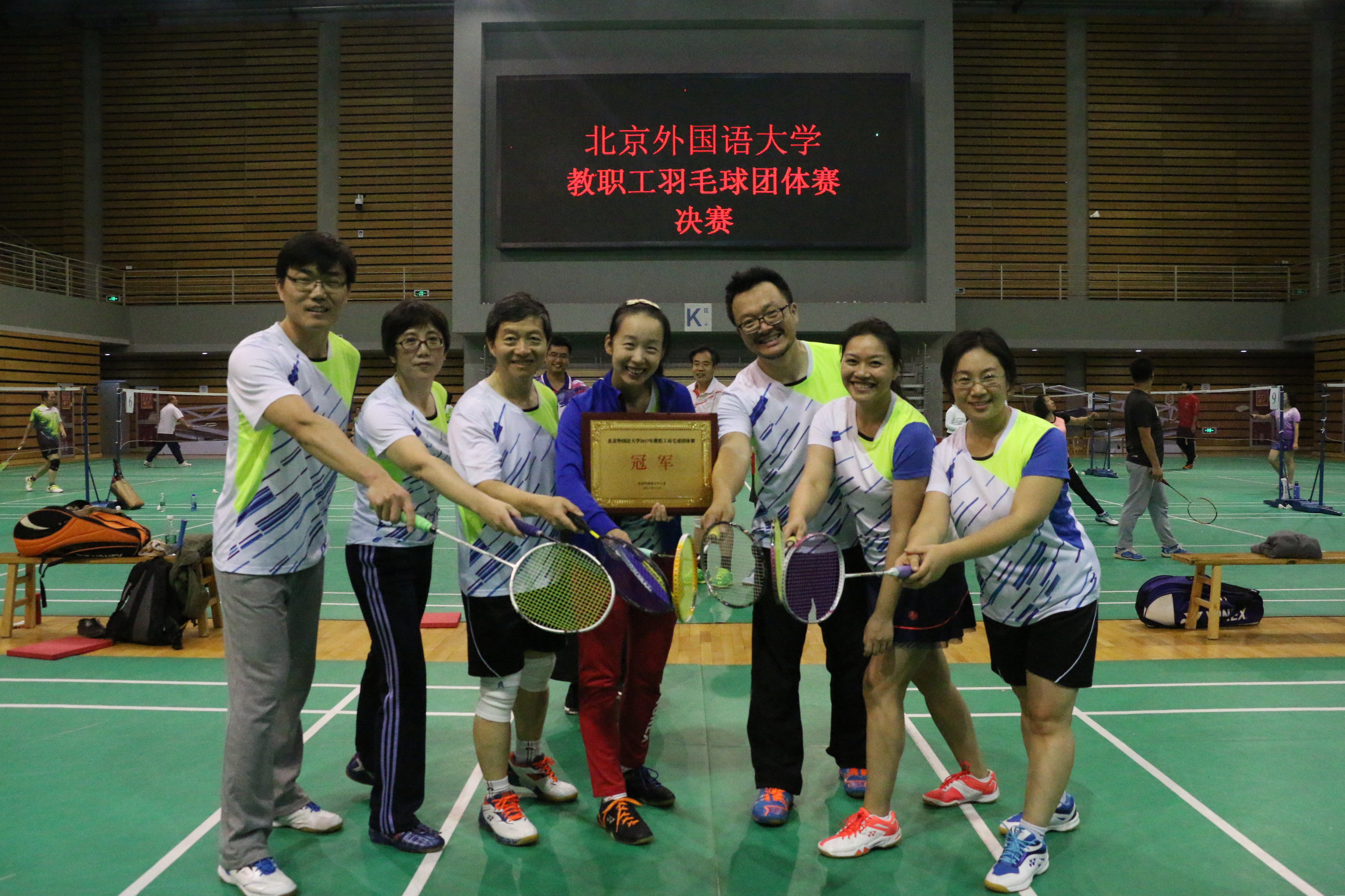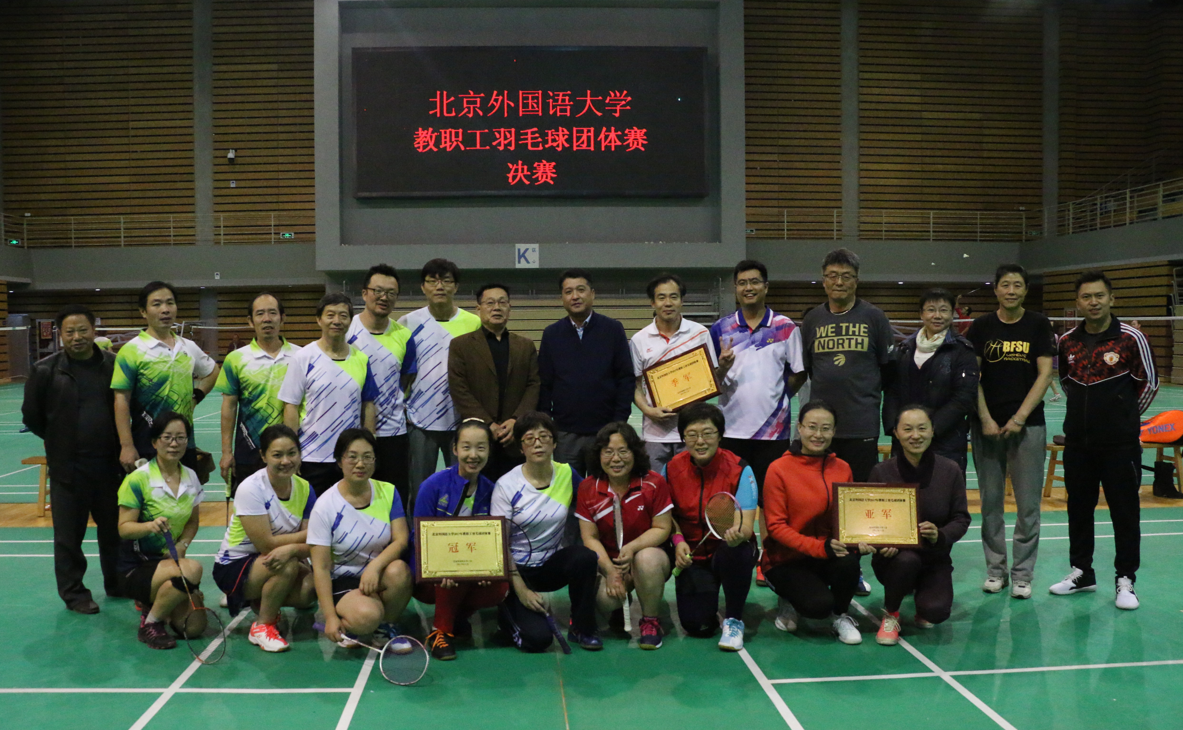 ——2017年11月8日至16日,为丰富北外教职工体育文化生活,校工会在体育馆二层举办了2017年度教职工羽毛球团体赛。英语学院蝉联冠军。