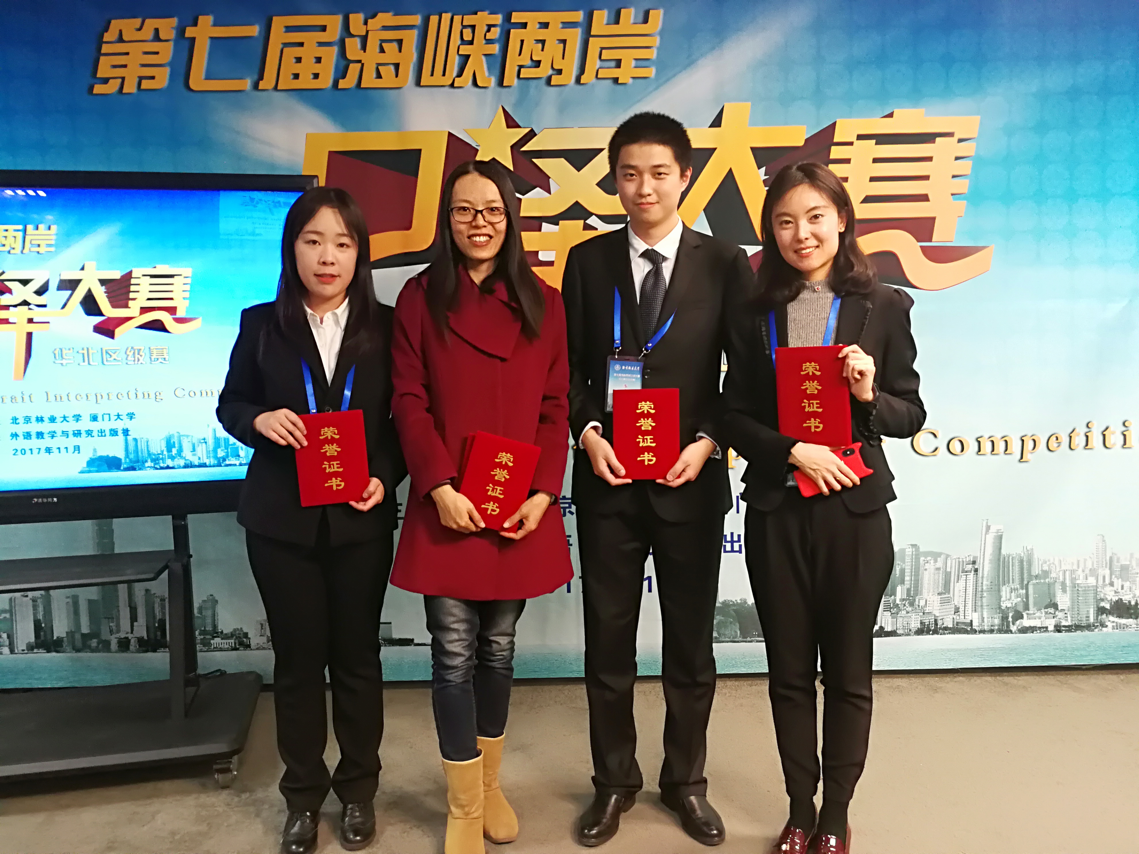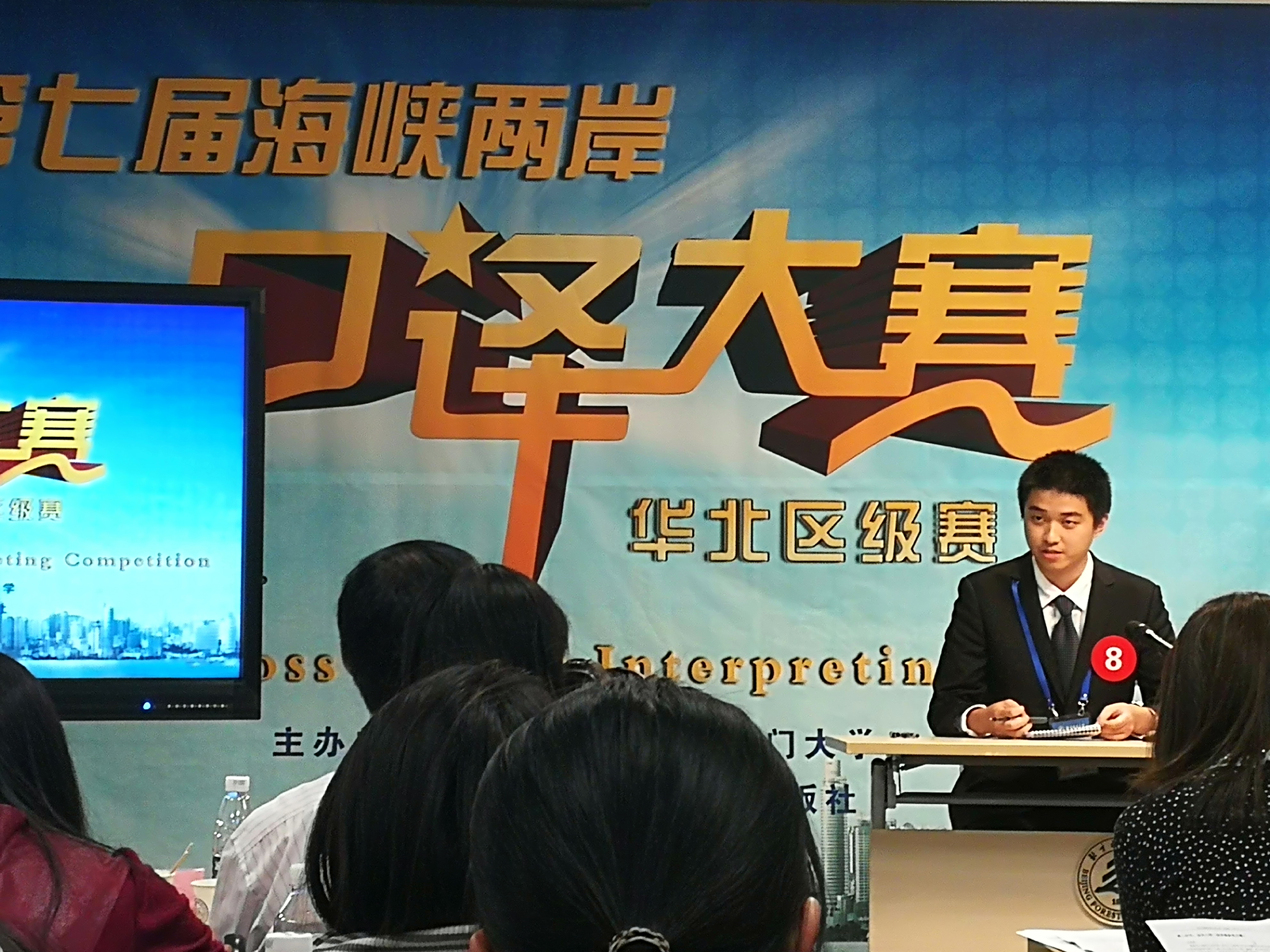 ——2017年11月11日,第七届海峡两岸口译大赛华北赛区区级赛在北京林业大学圆满落幕。来自北京、天津、河北、山西、内蒙古,五地数十所高校选手同台竞技,经过一天的精彩角逐,英语学院MTI口译专业研二学生侯博雅获得华北赛区特等奖,翻译系大三学生谢怡凡获得华北赛区一等奖。侯博雅成功晋级,将代表华北赛区参加12月在对外经济贸易大学举行的大陆地区决赛。指导教师王颖冲老师获得优秀指导教师奖。