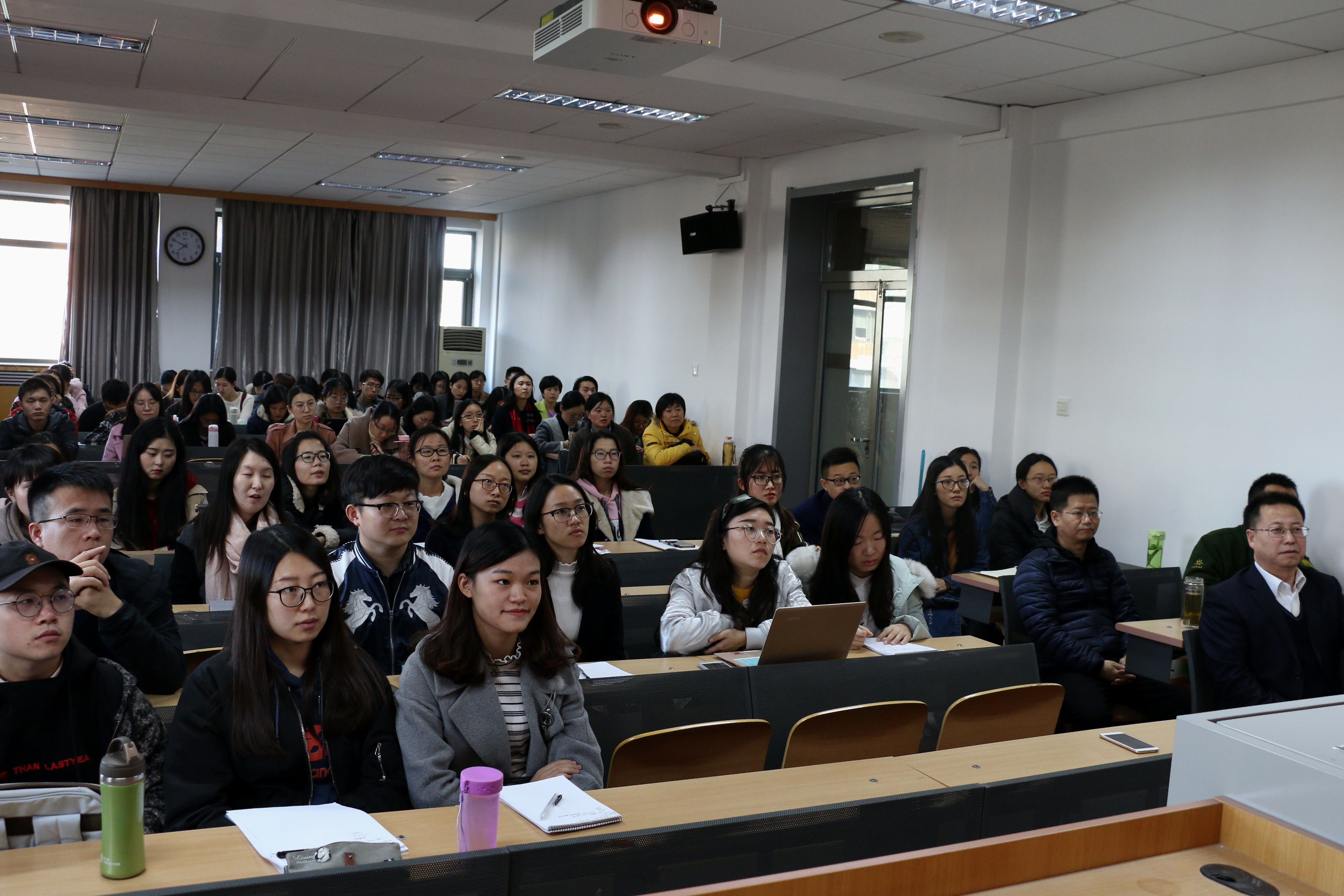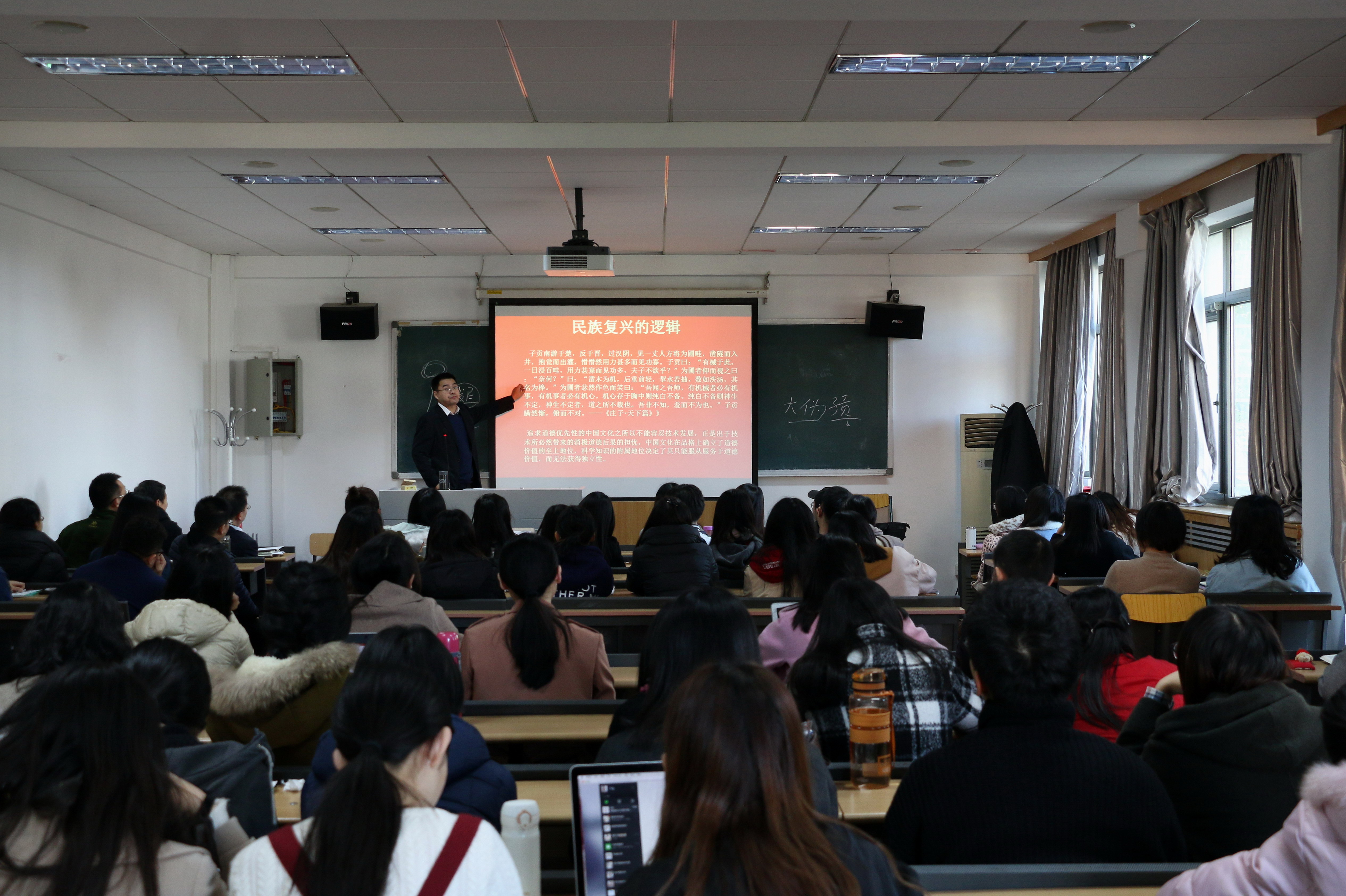 ——讲座由党总支书记路兴主持,英语学院近100名师生党员到场聆听讲座。