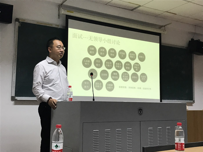 ——10月18日晚,英语学院“就业职通车”系列活动之第二期无领导小组面试培训讲座在英语学院417举办。