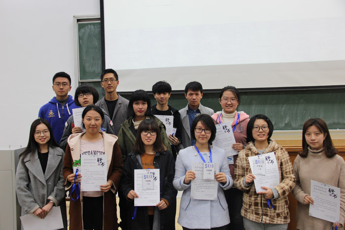 ——10月18日晚6点,英语学院团学联入职大会暨十九大专题学习活动在十二大教室召开。团总支书记鞠丹老师,团总支常务副书记林小雅,团学联主席郁凯伦,副主席董蒙初以及各部部长,部员一同参加。