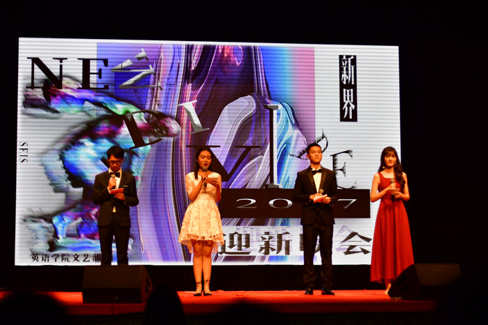 ——2017年10月13日晚,“新界•英语学院迎新晚会”在千人礼堂开幕。英语学院党总支书记路兴以及辅导员、班主任、2017级英院全体学生出参加了本场晚会。