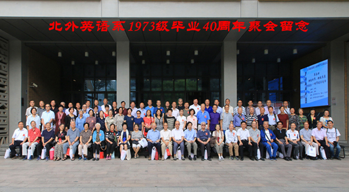 ——2017年 9月9日,我校英语学院1973级校友毕业40周年联谊会在行政楼配楼举行,来自全国和世界各地的近80位校友和包括已102岁高龄的伊莎白教授在内的20多位昔日恩师齐聚母校,忆昔日校园生活,话今日师生情谊,情深意切,场面动人。学校党委书记韩震,副校长袁军,党委副书记、纪委书记胡志钢出席联谊会。联谊会由郭健生校友主持。
