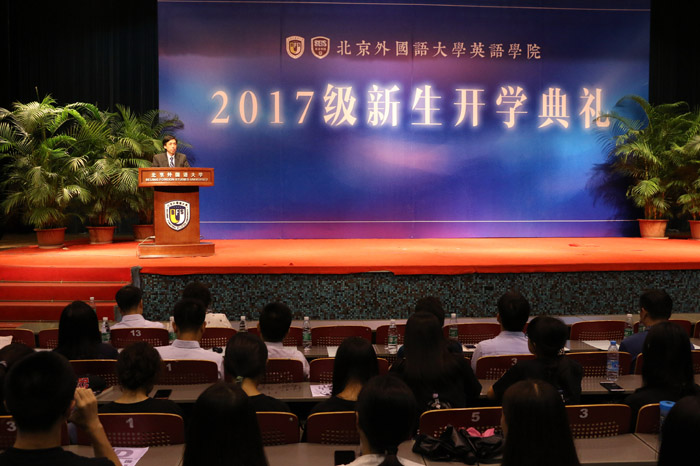 ——9月11日下午,我院2017级新生开学典礼在北京外国语大学千人礼堂举行。英语学院院长张剑,党总支书记路兴,副院长李莉文、谢韬,各研究中心主任、教研室主任、教师代表、辅导员以及2017级本科生、研究生、国际项目班476名新生参加开学典礼。