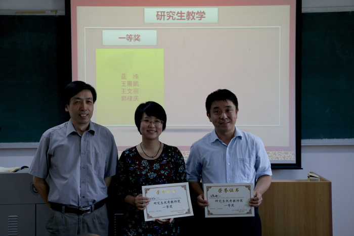 ——会议最后,学院对2016—2017学年第二学期的优秀教师及先进管理工作者进行了表彰。奖项共分“本科生教学优秀奖”(一等奖、二等奖)、“研究生教学优秀奖”(一等奖、二等奖)、“预科班教学优秀奖”、“同等学力研修班教学优秀奖”、“优秀班主任奖”及“先进管理工作奖”等六项。