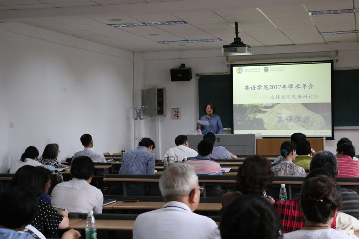 ——英语学院主管教学的副院长张莲教授的发言题目为“英语学院本科教学改革:现状、问题与思考”。她比较了英语学院2007、2012、2016年本科培养方案,认为技能课在英语学院的课程设置中并没有受到忽视,而是在近两年内有所加强。英语学院的本科教学改革与世界上英语教学的改革探索遥相呼应,顺应了世界英语教学改革的潮流。