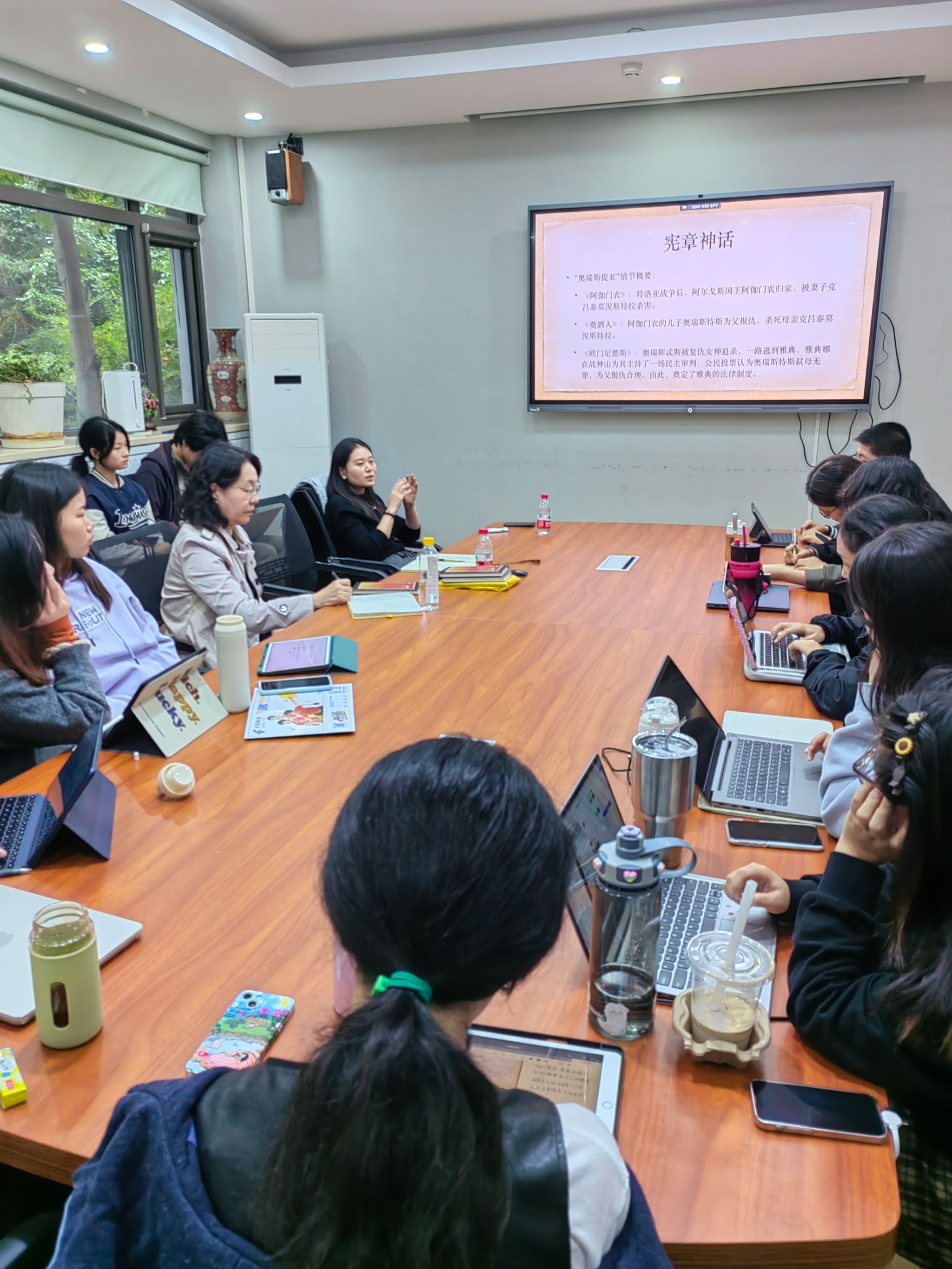 10月17日下午,清华大学新雅书院颜荻博士应北京外国语大学英语学院英美文学研究中心邀请,在英语学院111会议室为英语学院师生带来了一场题为“埃斯库罗斯《奥瑞斯提亚》中的城邦与文明”的精彩讲座。讲座由英语学院英美文学研究中心主任黄强老师主持。