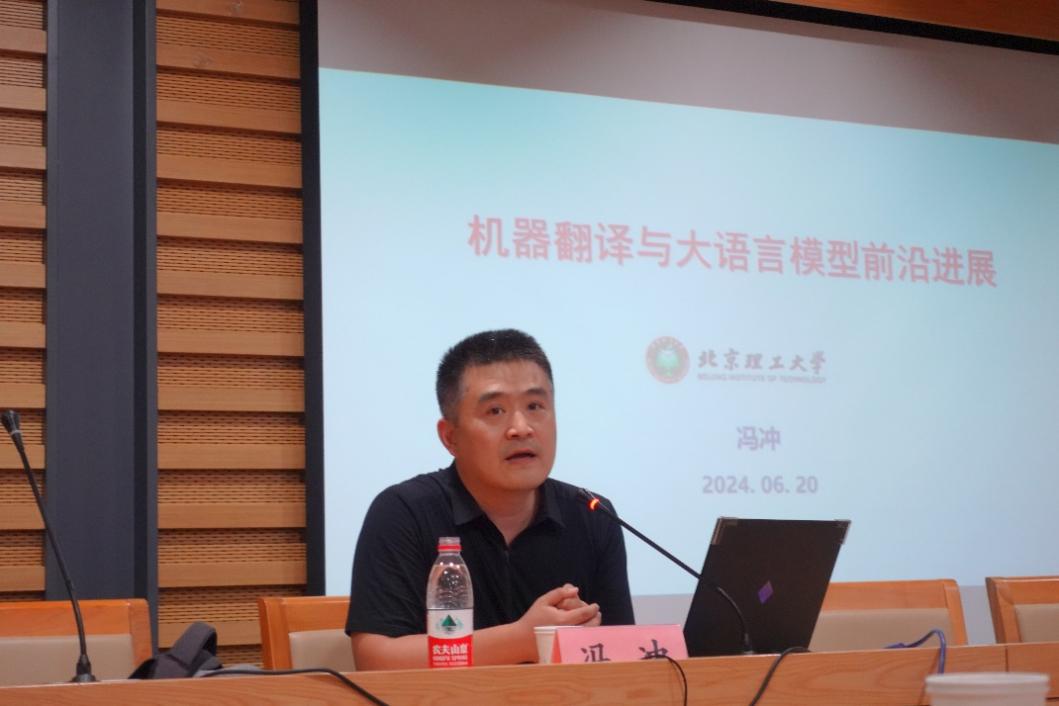 2024年6月20日下午,应北京外国语大学英语学院翻译研究中心、社会翻译学研究中心邀请,北京理工大学计算机学院教授、博导、国家“万人计划”科技创新领军人才冯冲在北外图书馆三层学术报告厅为全校翻译专业师生做了题为“机器翻译与大语言模型前言进展”的精彩讲座。讲座由北京外国语大学英语学院翻译研究中心主任王洪涛教授主持,英语学院孙三军教授、高翻学院王华树教授受邀担任与谈嘉宾,讲座吸引了校内外相关专业百余名师生参加。