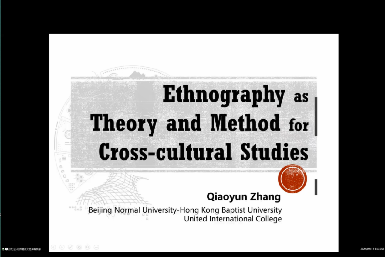 2024年4月12日下午,我院跨文化研究中心邀请北京师范大学-香港浸会大学联合国际学院张巧运博士做题为“民族志作为跨文化研究的理论和方法”的线上学术讲座。讲座由跨文化研究中心主任刘杨博士主持,英语学院师生及校内外老师及同学聆听了本次讲座。